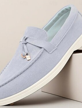 Mocassins décontractés pour hommes, gris clair, textile doux, respirant, confortables, pour un usage quotidien et les sorties décontractées.