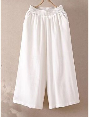 Femmes Pantalon capri Pantalons Pantalon d'été Shorts d'été Vacances Basique Occasionnel Longueur mollet Taille haute Uni in in france they say Pontalon wide leg Ceinture Élastique Doux Confortable