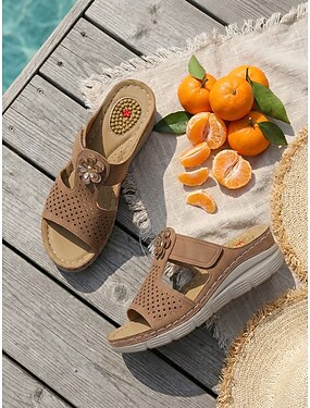 Sandales orthopédiques à fleurs marron pour femmes – chaussures confortables, respirantes et rembourrées, idéales au quotidien, à la maison, en voyage et pour les longues marches.