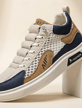 Baskets montantes décontractées pour homme, blanches et beiges, en similicuir, idéales pour la marche, les voyages et le quotidien.