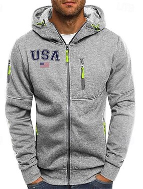 Homme Sweat à capuche Sweat à capuche zippé intégral Noir Blanche bleu marine Gris Clair Gris foncé À capuche Drapeau Américain Zip Up Avec Poches Sport & Loisir Quotidien Fête Polyester Streetwear
