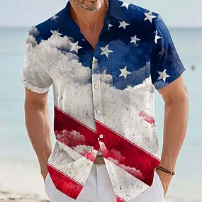 Homme 4 juillet, 250e anniversaire des États-Unis Drapeau américain 250e anniversaire Chemise Chemise Boutonnée Manche Courte Vintage Rétro Extérieur Fête Été Printemps Col Rabattu Impression 3D