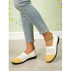 Chaussures jaunes en maille pour femmes, coupe large – mocassins confortables, légers et respirants, chaussures décontractées souples et flexibles idéales pour les voyages &vêtements de tous les jours
