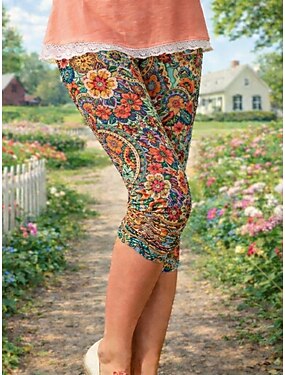 Femmes Leggings Vacances ancien Basique Capris Taille haute Fleuri Confort Doux Confortable Élastique Quotidien Extérieur Vacances Bleu Jaune Vert Été Printemps Automne Coupe Slim
