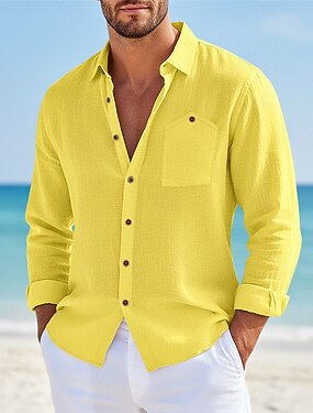 Homme Chemise Chemise en lin Chemise d'été Tenue de plage Chemise Boutonnée Uni Occasionnel Vacances Noir Blanche Jaune bleu marine manche longue Col Rabattu Été Printemps Vêtement Tenue Avec Poches