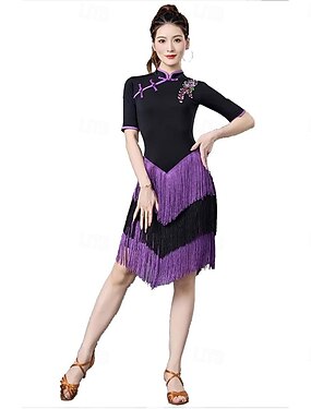 danse salsa robe de danse latine perles franges pompon cristaux / strass femme entraînement performance sans manches haute spandex