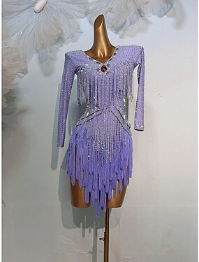 Danse Latine Robe Épissage Femmes Soirée Entraînement Performance manche longue Haut Nylon