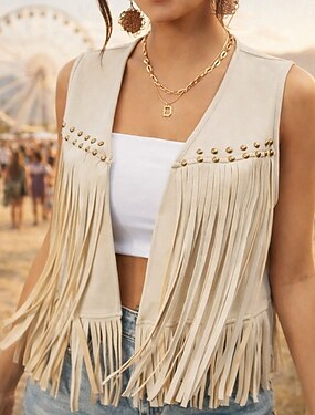 Rétro Vintage Années 1970 Disco Gilet en daim Sans manches Hippie Disco Frange à pompons Déguisement Femmes Halloween Carnaval Mascarade Festival de Musique Performance Défilé de la Fierté Adulte