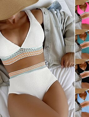 Femmes Standard Tankinis et bikinis de surf Maillot de bain 2 Pièces Blocage de couleurs Dos Nu Protection UV Élastique Sans manches Maillot de Bain Surf Plongée Natation Été