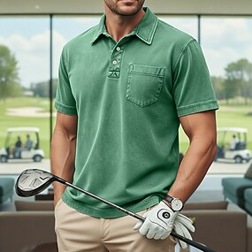 Homme Polo Chemise 100% coton délavée à l'acide Occasionnel Affaires Revers Manche Courte Mode Basique Uni Vintage Affligé Été Printemps Printemps & Été Coupe régulière Marron foncé Noir Vert Claire