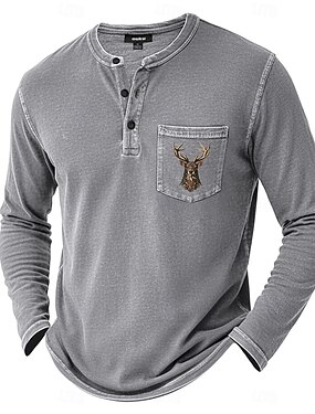 Homme Graphique Loup Viking Chemise Henley manche longue ancien Mode Mignon Occasionnel Fête Sortir Printemps & Automne Toutes saisons Noir bleu marine Henley T-shirt Henley