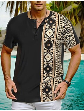 Homme Ethnique T-shirt Chemise Henley Manche Courte Designer Rétro Vintage Occasionnel Quotidien Rue Été Printemps Noir Henley T-shirt Henley