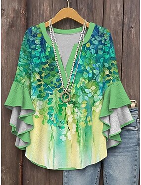 Femmes Chemise Chemisier A Volants Imprimé Fleuri Graphique Vacances Quotidien Rétro Vintage Demi Manches Col en V Hauts Réguliers Quotidien Fête Sortir Vert herbe Vert Grise Été Printemps Automne