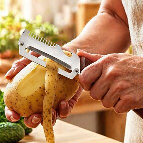 Épluche-légumes avec manche en bois et décapsuleur, épluche-légumes multifonctionnel pour la cuisine, outil pratique pour éplucher fruits, citrouilles, pommes de terre, carottes et autres légumes.