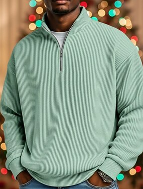 Homme Chemise en velours côtelé Polo Vacances Rue Zip quart manche longue Mode Basique Couleur Unie Fermeture éclair Automne Printemps & Automne Automne & Hiver Coupe décontractée Noir Vin Vert fonc