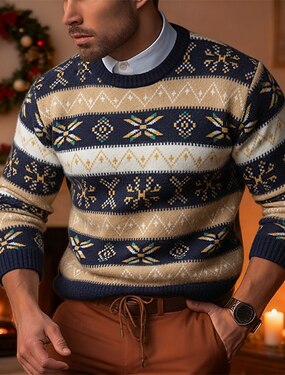 Homme Chandails de Noël Pull Pull Fair Isle Pull Tricoté Côtelé Tricoter Hauts Réguliers Tricoté Jacquard Col ras du cou ancien Mode Noël Vacances Vêtement Tenue Automne Hiver Kaki S M L