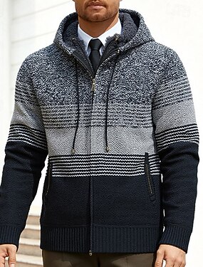 Homme Pull Gilet Cardigan Côtelé Tricoter Hauts Réguliers Tricoté Géométrique Col montant Moderne Contemporain Chic décontracté Occasionnel Tenue quotidienne Vêtement Tenue Automne Hiver Gris Claire