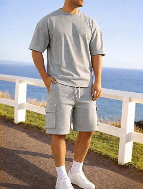 Homme Ensemble Survetement Tenue de Jogging Combinaisons d'entraînement Cordon de serrage 2 pièces Couleur Unie Tee-shirt et Pantalons de Course Ensemble de vêtements de sport Été Printemps Noir