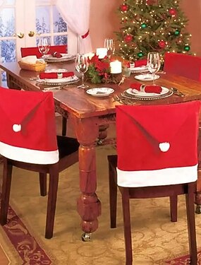 Lot de 4 housses de chaise de Noël, 24 x 20 pouces, housses de dossier de chaise en non-tissé avec chapeau de Père Noël et adhésif, housses de chaise de salle à manger de vacances pour fête de Noël et