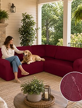 Housse de canapé extensible anti-poussière et tout-puissant en forme de L, housse de canapé en tissu super doux bordeaux avec une housse de protection gratuite, housse de canapé moderne pour le