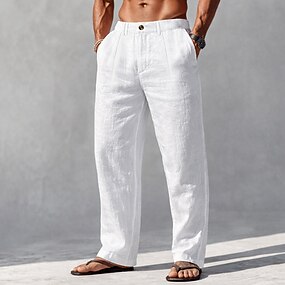 Homme Pantalon en lin Pantalon pantalon été Pantalon de plage Cordon Taille elastique Jambe droite Plein Confort Respirable Toute la longueur Extérieur Vacances Plage Vacances Mode Noir Blanche