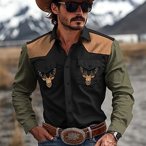 Homme Vache Chemise Western Chemise de cow-boy manche longue Western Occasionnel Printemps Automne Col Rabattu Boutonner Noir Marron
