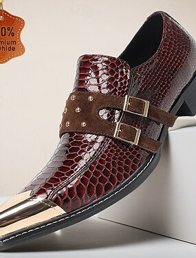 Chaussures habillées pour homme en cuir véritable bordeaux imitation serpent, élégantes chaussures à double boucle pour les mariages, chaussures de luxe pour le marié et les invités.