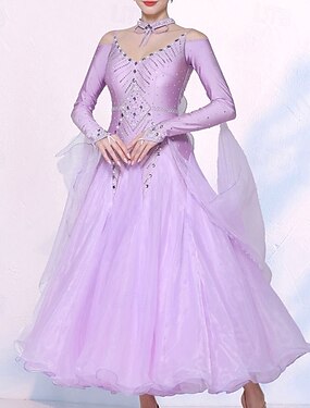 Danse de Salon Robe Plis Épissage Cristaux / Strass Femmes Performance Entraînement manche longue Haut Spandex Maille Imitation Soie