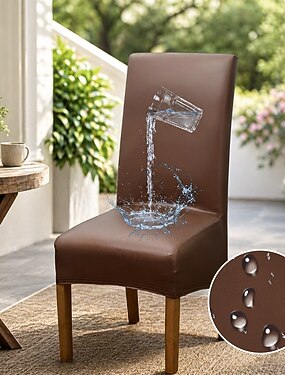 Housse de chaise de salle à manger étanche housse de chaise extensible noire housse de siège de chaise à dossier haut en cuir pu protecteur avec bande élastique pour salle à manger, mariage