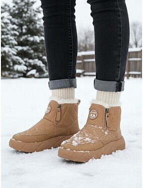 Bottes d'hiver imperméables matelassées kaki pour femmes – bottines compensées chaudes doublées de fourrure, idéales pour la neige, les promenades en extérieur, les voyages et le quotidien
