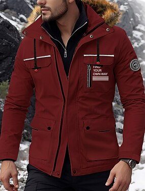 Homme Veste d'Hiver Veste Polaire Veste à capuche Veste de Randonnée Sport extérieur Camping et randonnée Etanche Coupe-vent Bordure en Fourrure Capuche détachable Automne Hiver Couleur unie Actif