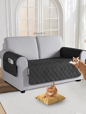 Housse de canapé imperméable 1 pièce, sans dossier, double épaisseur, avec accoudoirs, lavable et compatible avec les animaux domestiques, avec poche intégrée.
