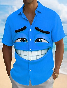 Homme Dessin animé Drôle Visage Souriant Chemise Chemise d'été Chemise Boutonnée Manche Courte Mode Décontractée Extérieur Vacances Tenue Quotidienne Été Printemps Col Rabattu Impression 3D chemises