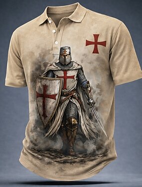 Homme Chevaliers Templiers Polo Manche Courte Polos Revers Occasionnel Rue Athleisure Tenue quotidienne Impression 3D Boutons Maille Respirante Été Printemps Noir Blanche Rouge
