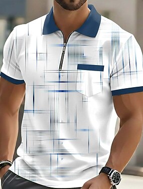 Homme Géométrique Polo Manche Courte Polos Revers Occasionnel Extérieur Fête Tenue quotidienne Avec Poches Impression 3D Printemps & Été Bleu Noir Violet