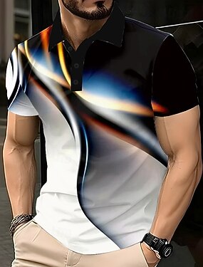 Homme Dégradé Géométrique Polo Manche Courte Polos Revers Occasionnel Athleisure Impression 3D Boutons Été Noir