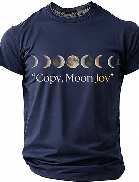 T-shirt homme « Copie, joie lunaire » à motif pleine lune, manches courtes, col rond, astronomie, humour sarcastique, bleu turquoise, coupe décontractée, cadeau d'anniversaire, vêtement de créateur