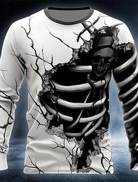 T-shirt à manches longues pour homme avec squelette de crâne T-shirt Impression 3D Col rond T-shirt Mode Exagéré Décontracté Quotidien Été Printemps Automne Vêtements