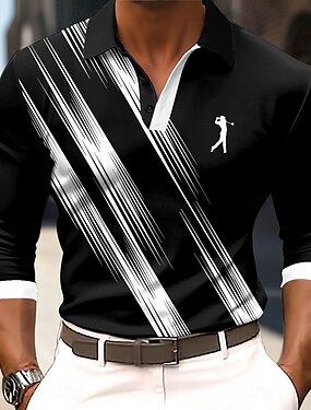 Homme Géométrique Ligne Polo manche longue Polos Chemises à Col Vêtement décontracté de travaile Affaires Athleisure Tenue quotidienne Impression 3D Boutons Printemps Automne Hiver Noir Blanche Bleu