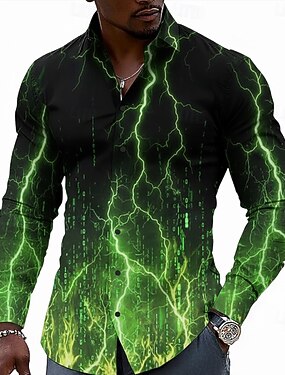 Homme Géométrique Éclairage Chemise Chemise Boutonnée manche longue Mode Décontractée Fête Décontracté Quotidien Printemps Automne Col Rabattu Impression 3D chemises à col Rose Claire Violet Vert