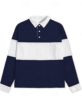 Homme Rayures Polo de rugby manche longue Polos Chemises à Col Occasionnel École Extérieur Athleisure Impression 3D Printemps Automne Hiver Bleu de minuit