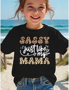 Fille 3D Graphique Lettre T-shirt Manche Courte Impression 3D Été Printemps Sports Mode Streetwear Enfants 4-12 ans Col Rond Occasionnel Quotidien Extérieur Coupe régulière