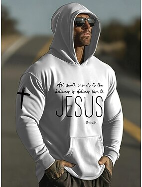 Homme Croix Jésus Sweat à capuche Sweat à capuche pull Sweat à capuche décontracté Sweatshirt Mode Quotidien Vacances Occasionnel Vintage Rétro À capuche Vacances Vêtements de rue Festival Bleu Noir