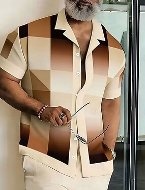 Homme Géométrique Grille / Carreaux Chemise Chemise d'été Chemise Boutonnée Manche Courte Mode Décontractée Quotidien Vacances à la Plage Été Col Rabattu Impression 3D Une poche avant Chemise en lin