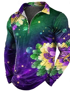 Carnaval Homme Fleuri Polos à zip manche longue Polos Revers Occasionnel Extérieur Tenue quotidienne Impression 3D Printemps Automne Violet