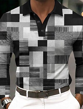 Homme Bloc de Couleur Géométrique Chemises Polo Gaufre manche longue Polos Chemises à Col Vêtement décontracté de travaile Affaires Tenue de travail Tenue quotidienne Boutons Printemps Automne Bleu