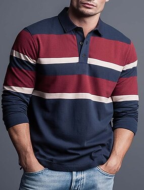 Homme Rayé Polos de Rugby manche longue Polos Chemises à Col Vêtement décontracté de travaile Extérieur Tenue Quotidienne Tenue de travail Impression 3D Boutons Printemps Automne Hiver Bleu Encre