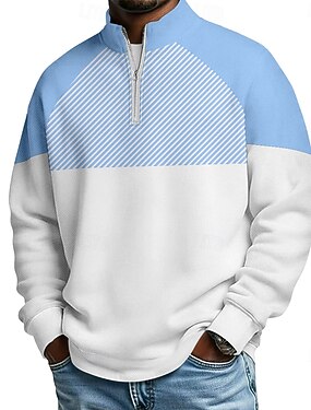 Homme Bloc de Couleur Géométrique Polos à zip manche longue Polos Col grand-père Occasionnel École Athleisure Fête Tenue quotidienne Impression 3D Polo à fermeture éclair 1/4 Printemps Automne Bleu