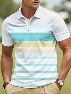 Homme Rayures horizontales Polo Manche Courte Polos Chemises à Col Vêtement décontracté de travaile Extérieur Athleisure Tenue quotidienne Impression 3D Été Bleu Vert
