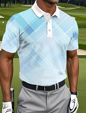 Homme Géométrique Golf Polos de Sport Manche Courte Polos Revers Occasionnel Athleisure Impression 3D Boutons Été Bleu Rouge Violet